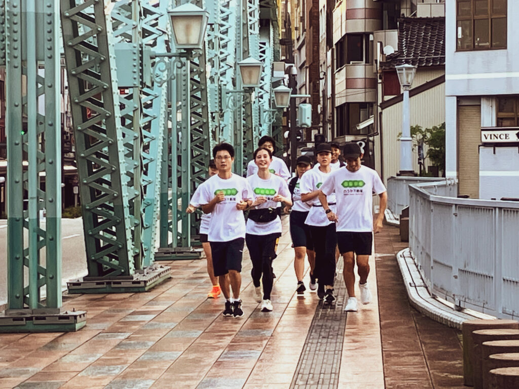 この日のコースは、金沢マラソンの前半コースをなぞる約19kmでした。あつい時期につみ重ねてきた練習の成果でしょうか。終盤まで、全員がたれずに走れました。最後はあえて本番ルートからすこし外れて、坂道チャレンジも。足腰に疲労を感じたメンバーもいましたが、声をかけあいながら無事に完走しました。ハーフマラソンに近い距離を走り切ることができて、達成感ハンパない学生さんたちでした。