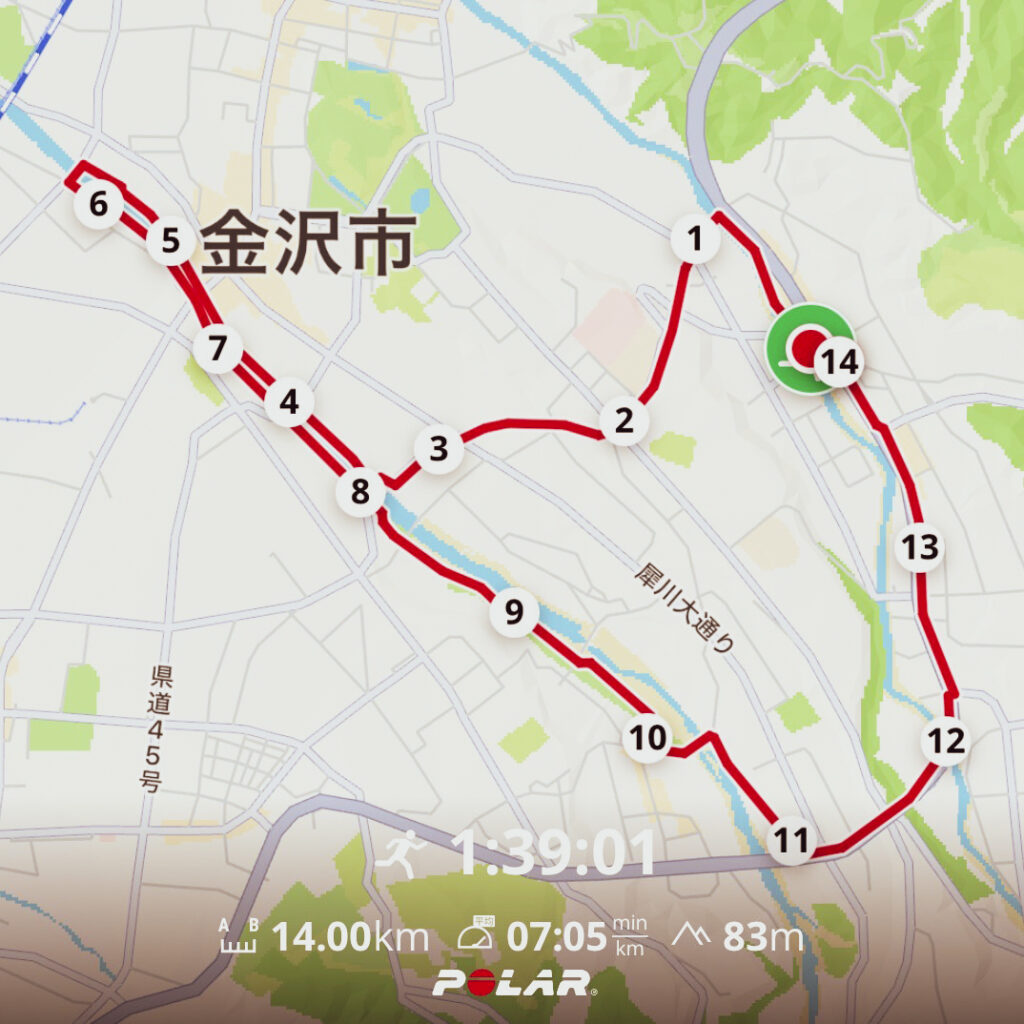 いよいよ金沢マラソンまで残り2週間前となりました!今回はジョグでレースに向けて調子をととのえました。もりの里から小立野トンネルをくぐり、ランナーの聖地(?)犀川河川敷へ。下流方向へ向けて走り、御影大橋で折り返し、山側環状線からのうか不動産もりの里店までの14kmでした。本番を想像して走っていたのか、みんな黙々淡々と走っているのが印象的でした。途中で転んでしまうメンバーがいてビックリ!くれぐれもケガなくすごして当日を迎えましょう!
